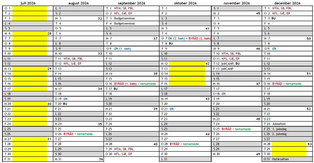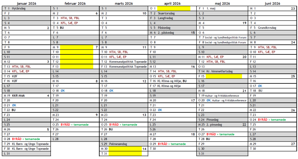mandage før et byrådsmøde, og mandage før udvalgsmøder.